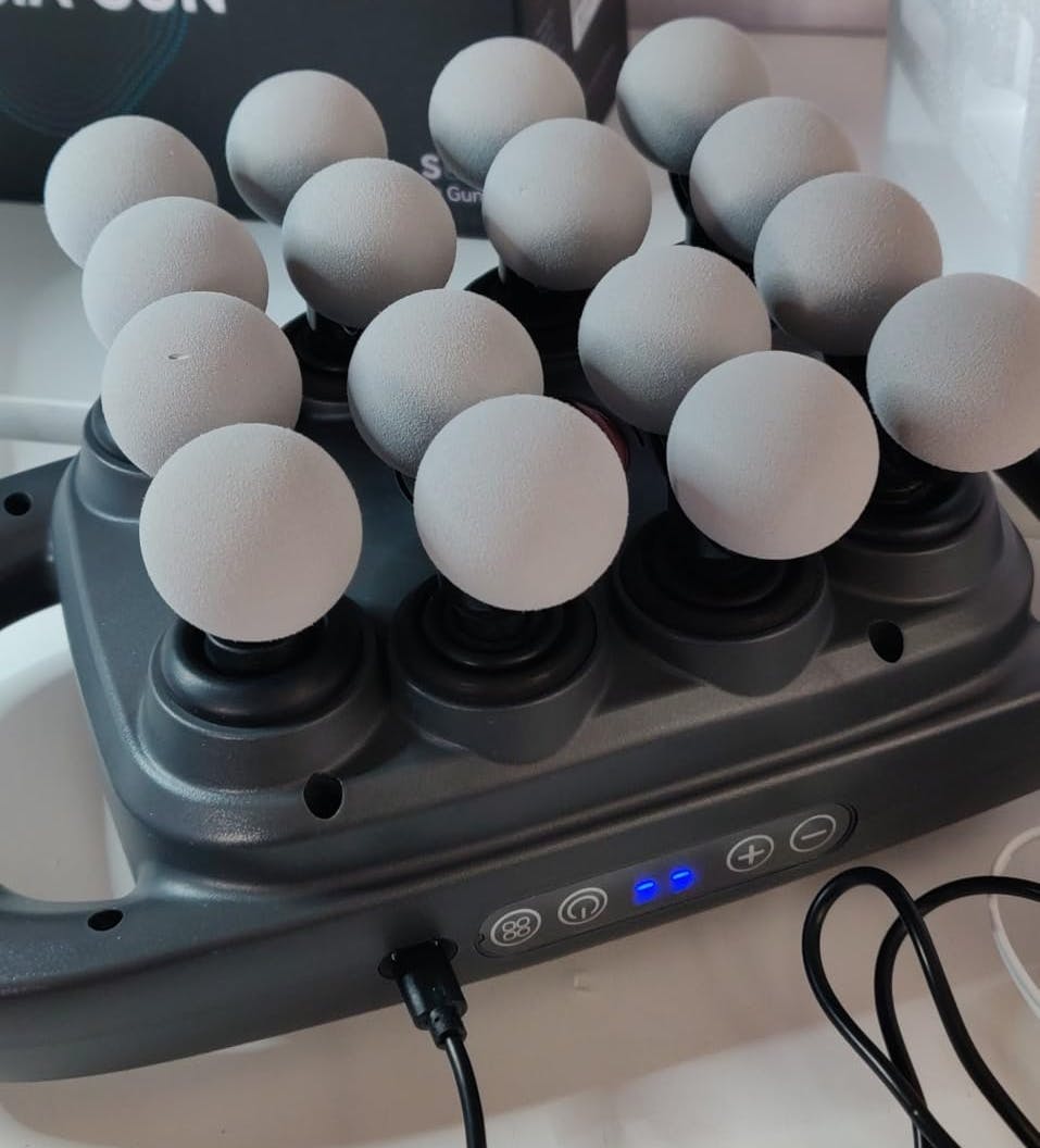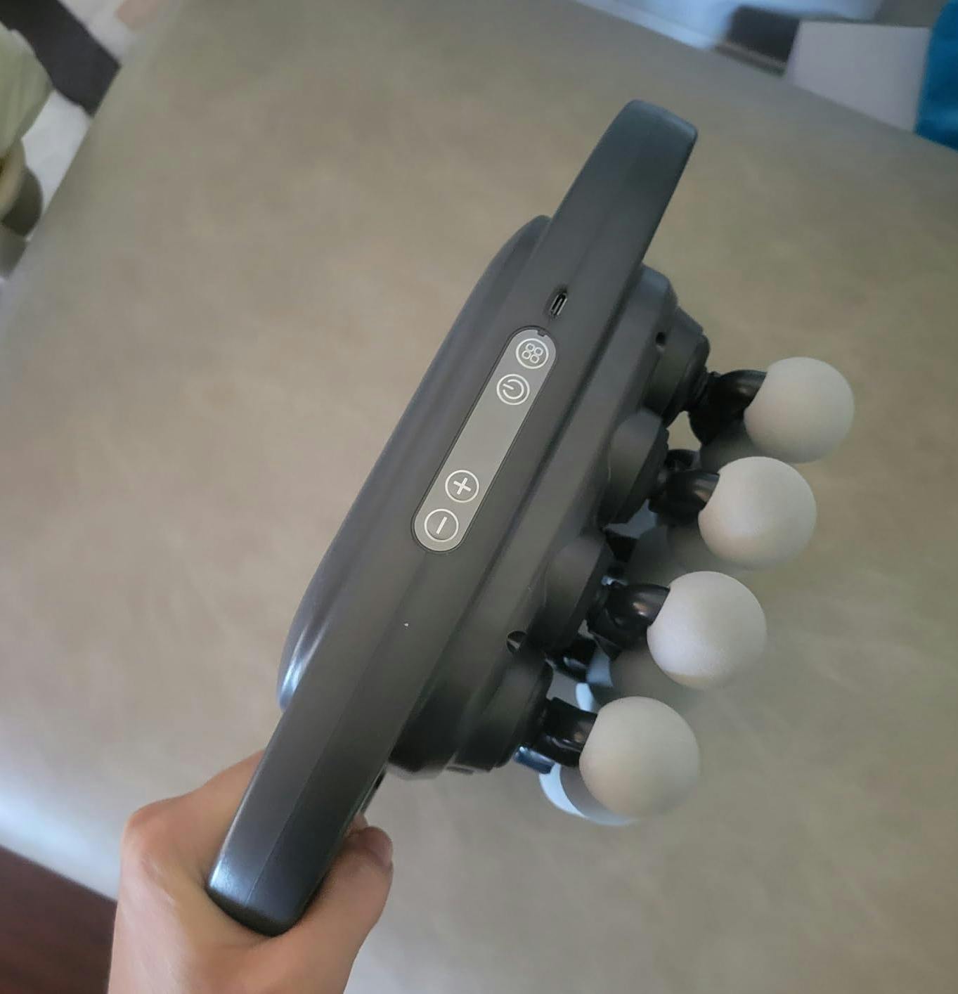 This thing has so many power settings and you can use it everywhere! You can set it on your back and it'll massage away. The handles make it super easy to massage yourself or others. Bought it to help my husband and I use it more than him. The charge lasts forever and it's a normal C. There is so much massage area too with the 16 heads. Honestly the best!